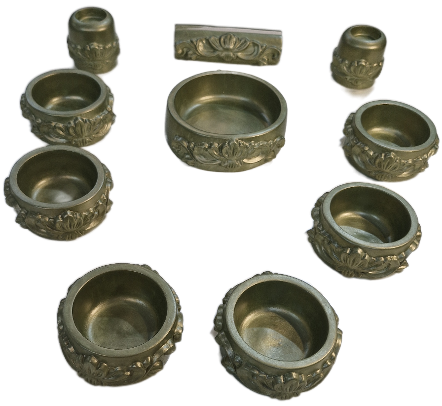 تعداد6 کاسه کوچک، یک کاسه بزرگ، استند آینه، دو جا شمعی